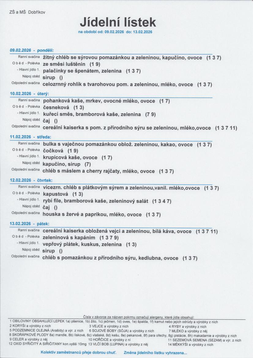 - POZOR ZMĚNA - obědy je třeba odhlašovat do 7:00 hodin ráno (ne do 7:10 jako dříve)