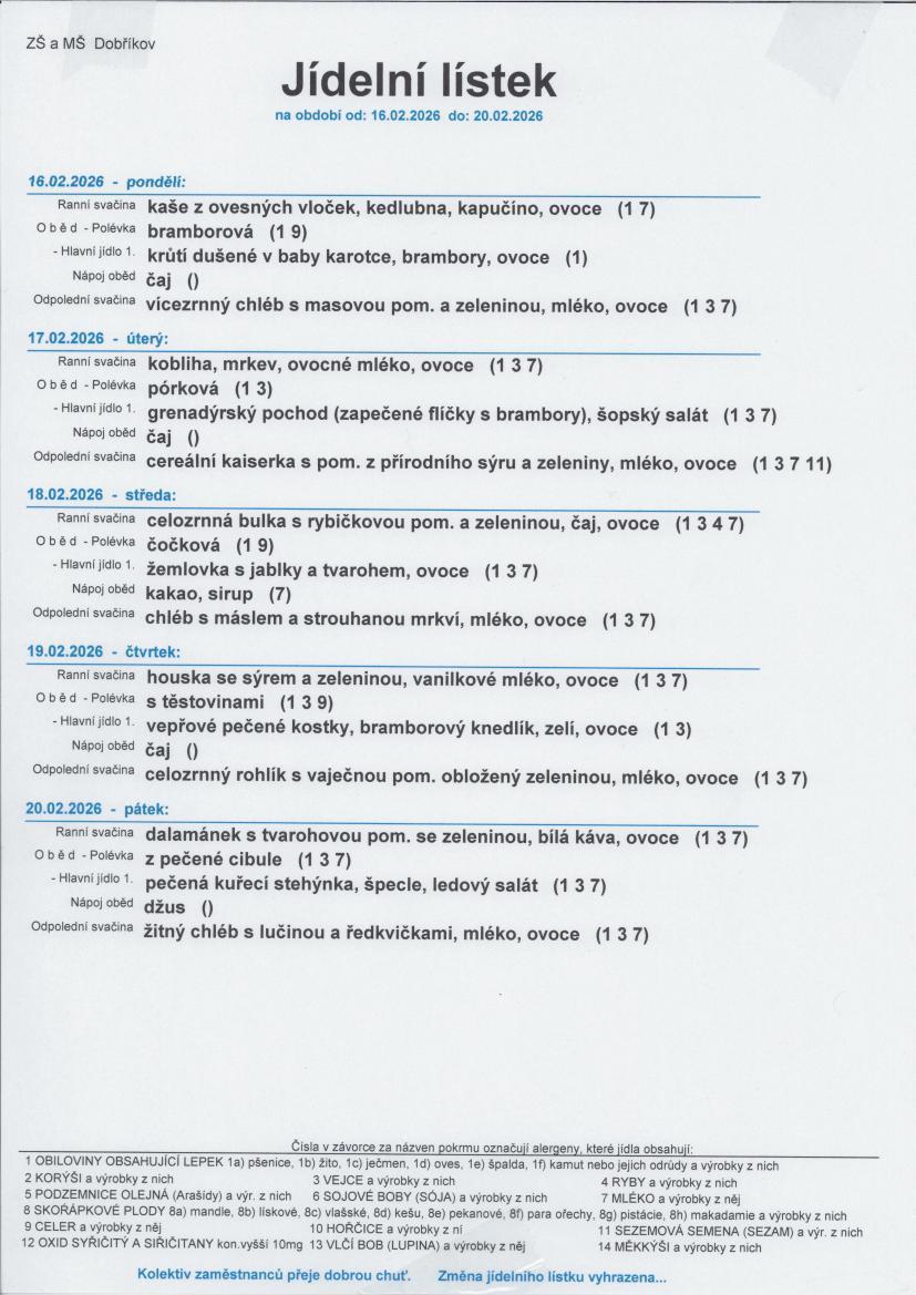 - POZOR ZMĚNA - nový kontakt na školní jídelnu 731 162 172